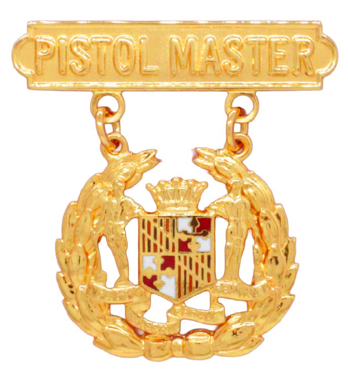 Pistol Master Marksmanship Medal, raised lettering with no enamel.