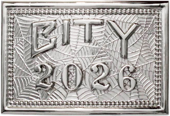 Rhodium panels and center on a Hamilton Gold badge backing OR Hamilton Gold panels and center on a Rhodium badge backing.