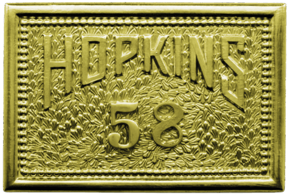 Rhodium panels and center on a Hamilton Gold badge backing OR Hamilton Gold panels and center on a Rhodium badge backing.